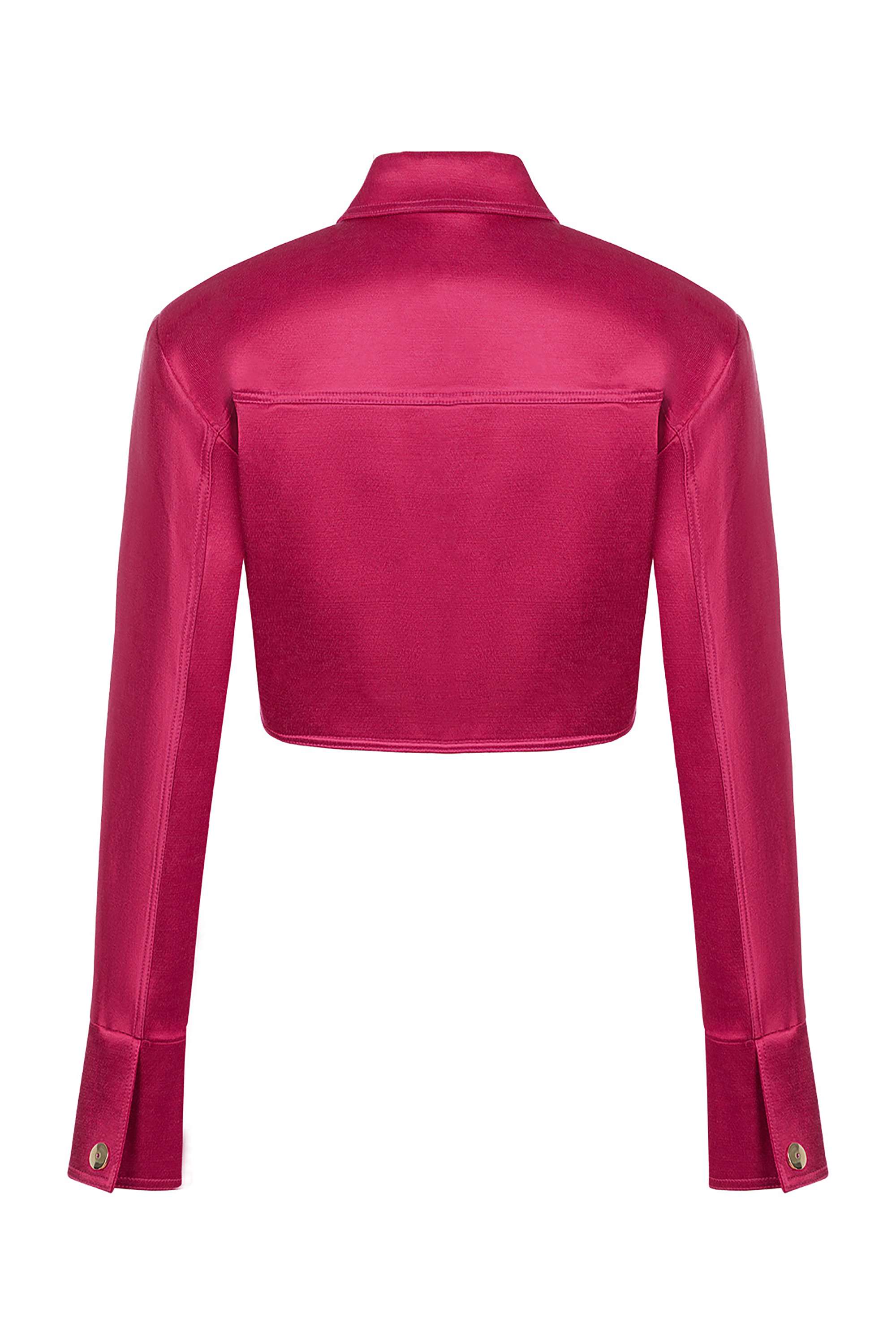 Asymmetric pockets gold rhinestones pleated collar crop jacket.