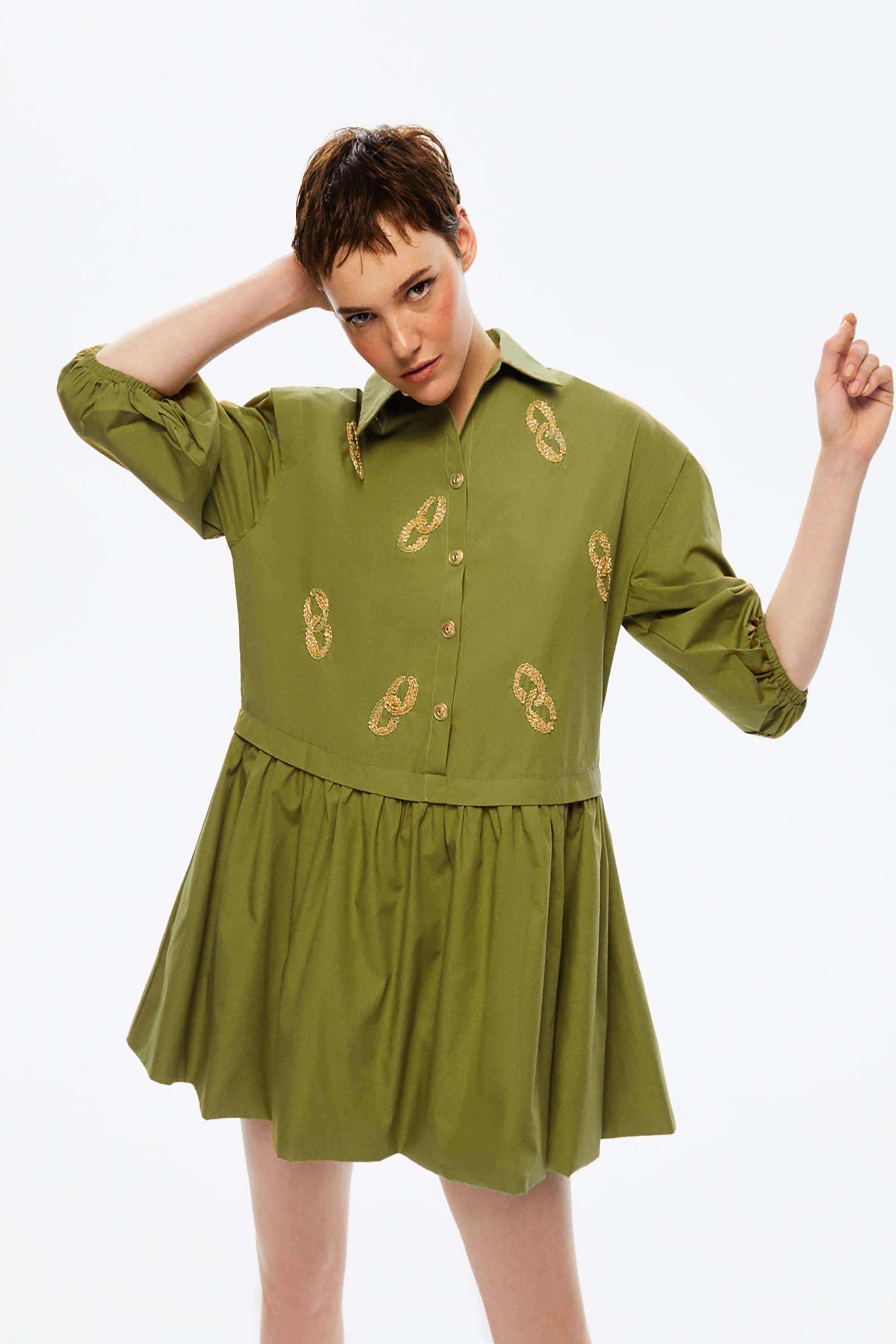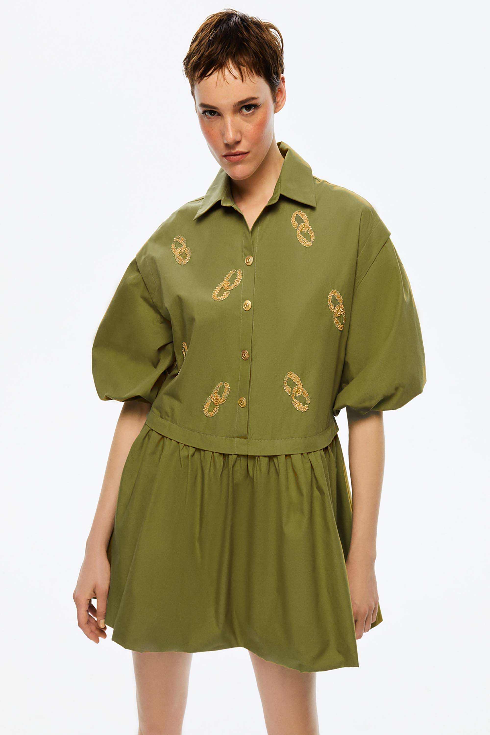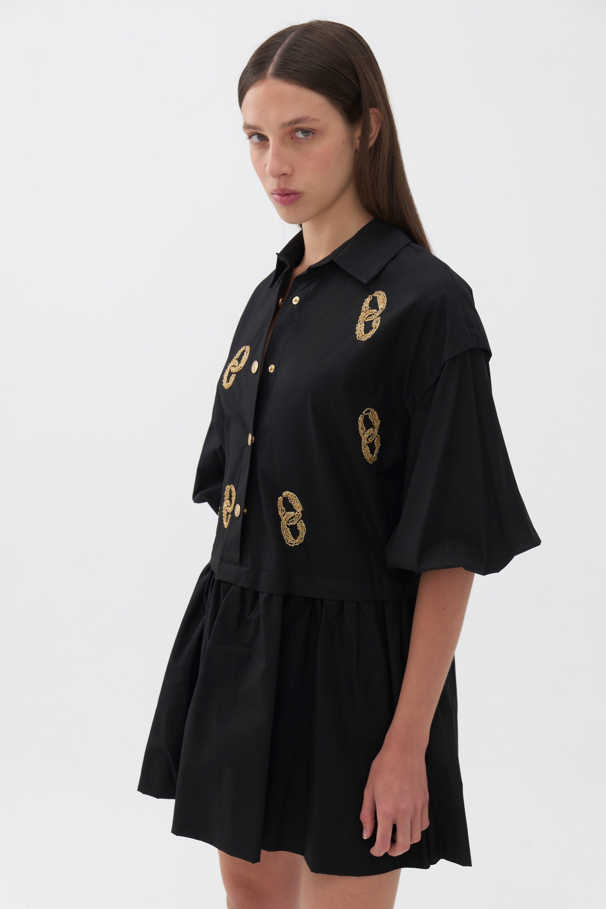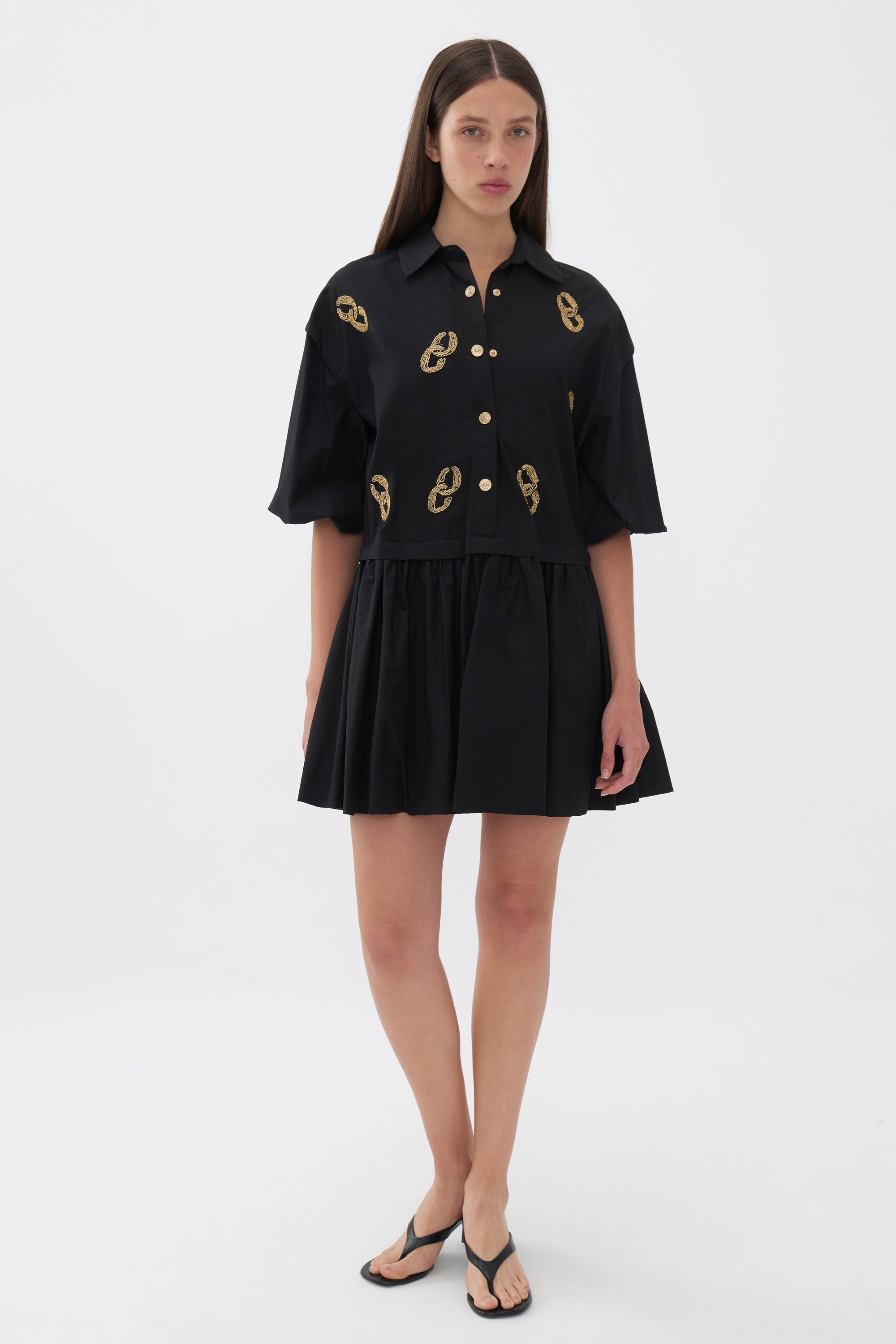 Embroidered Balloon Sleeve Dress (Final Sale)