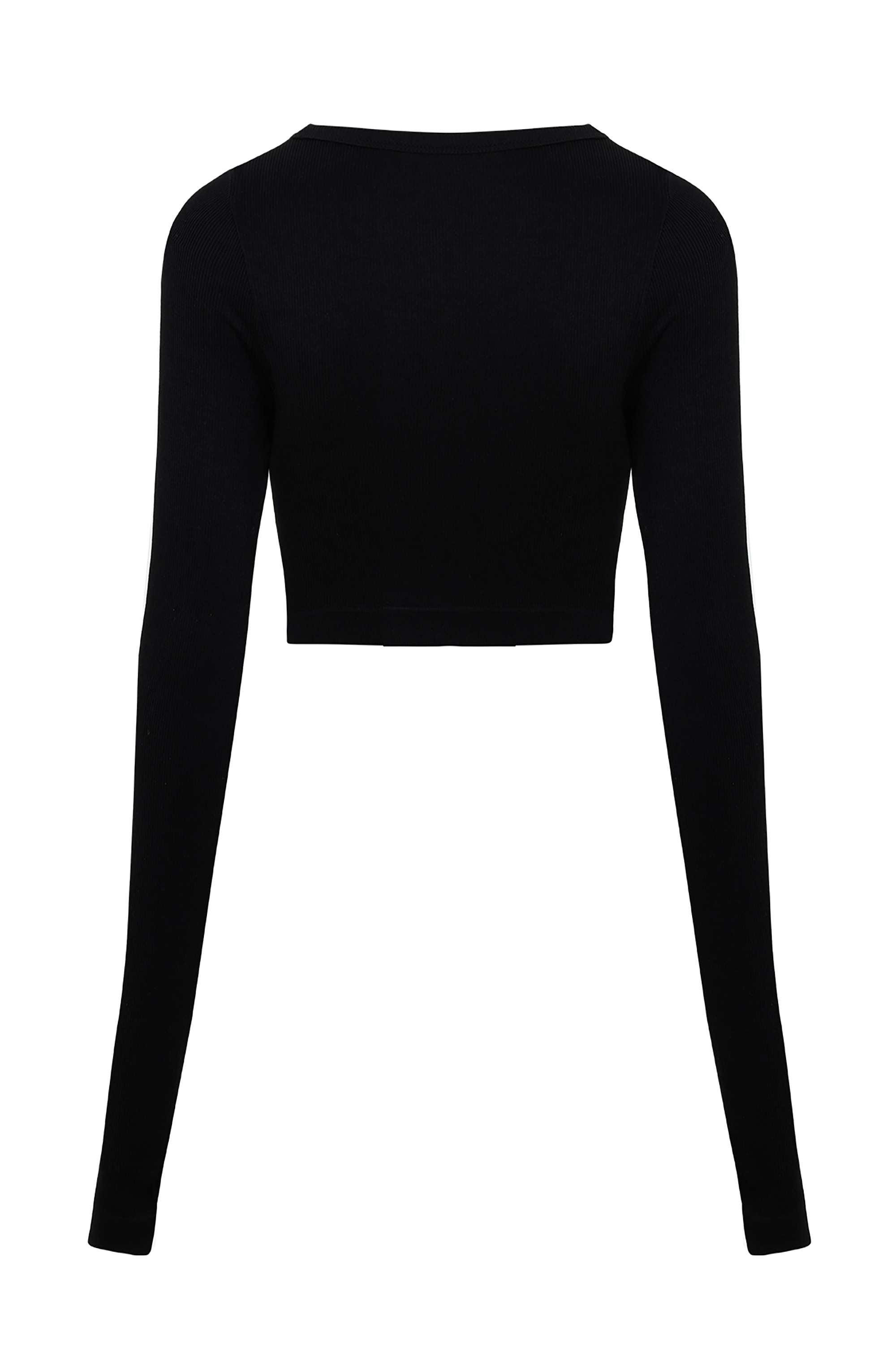A must-have staple, this knit crop top from Nocturne features an elegant boat neckline that enhances its classic appeal. Made from a soft wool blend, it offers long sleeves and a flattering fit, perfect for adding warmth and style to any outfit.