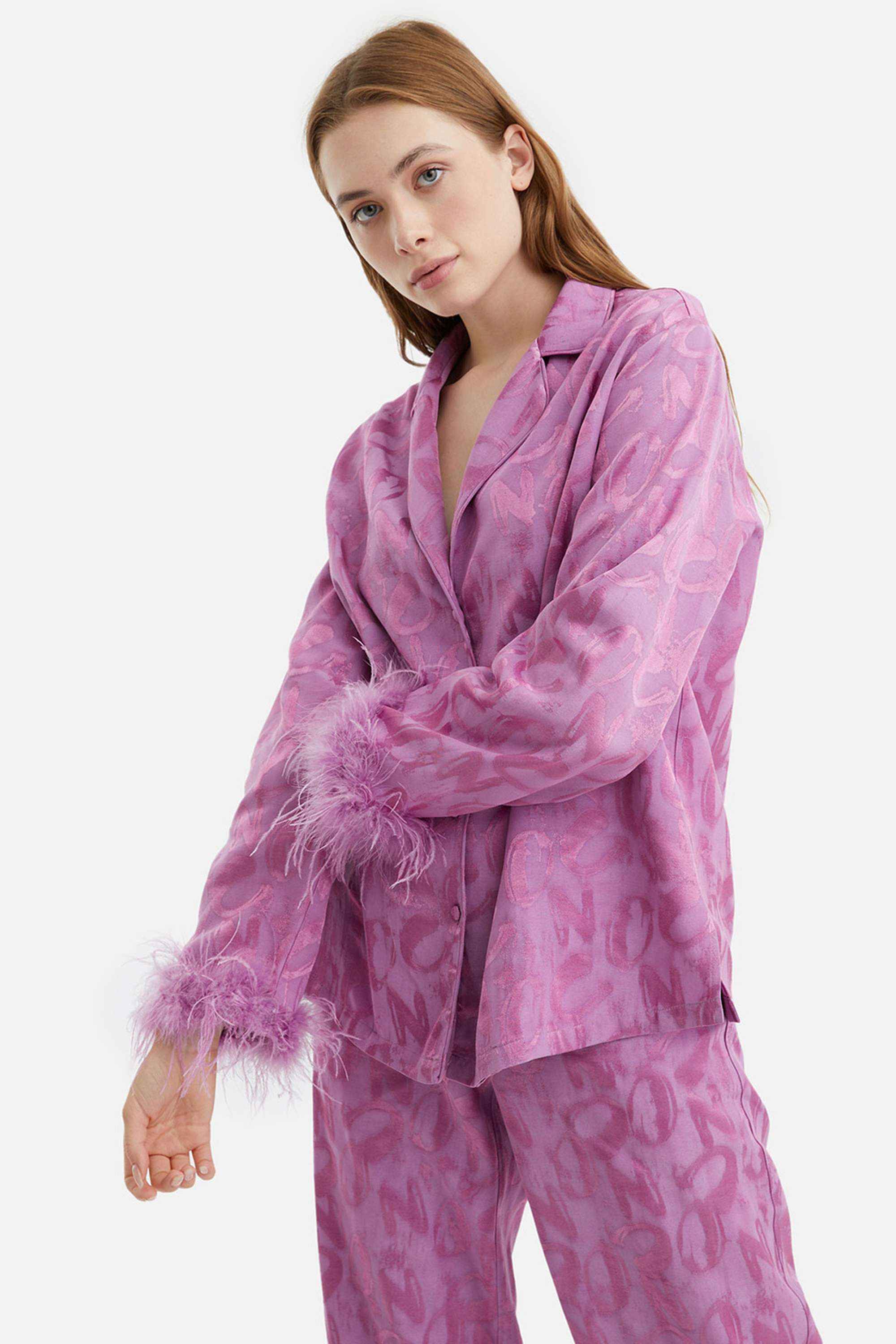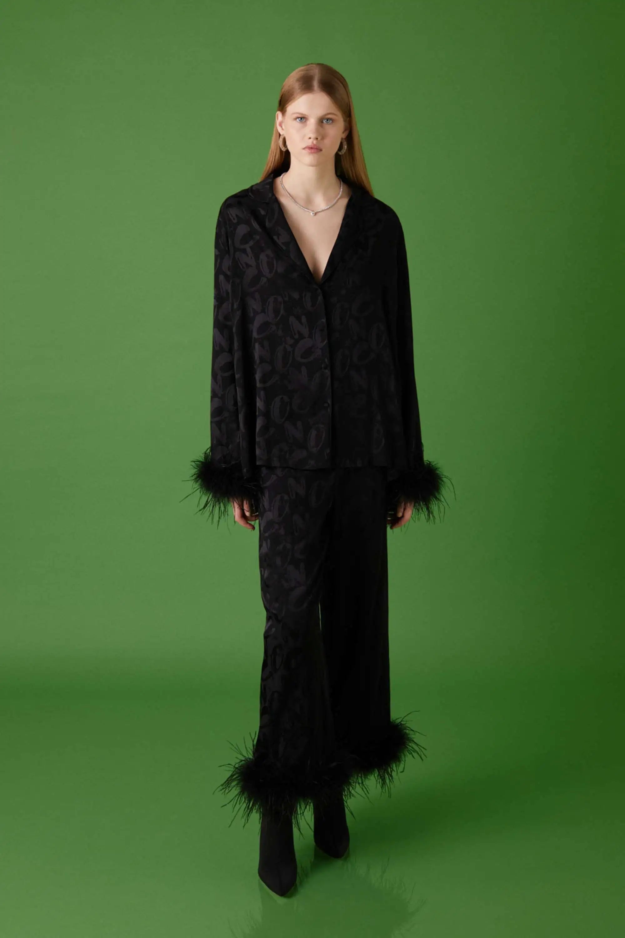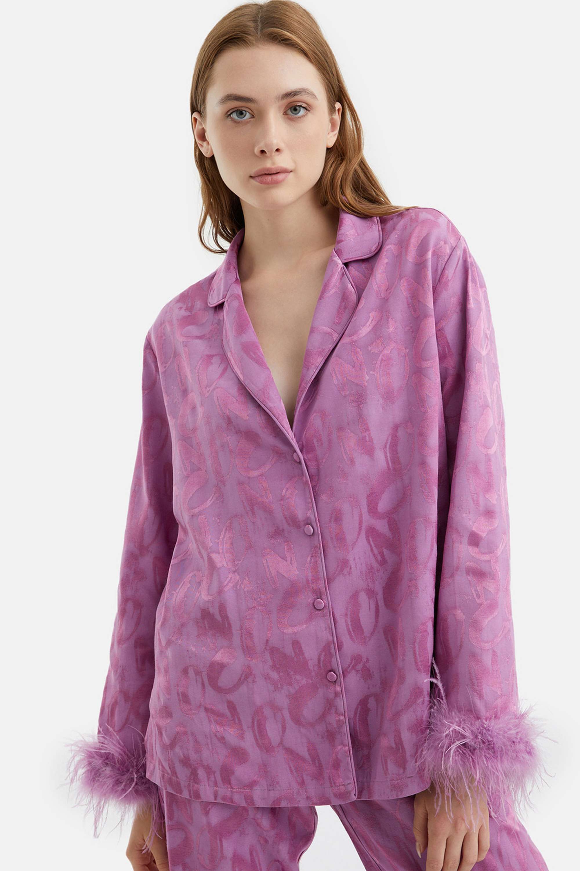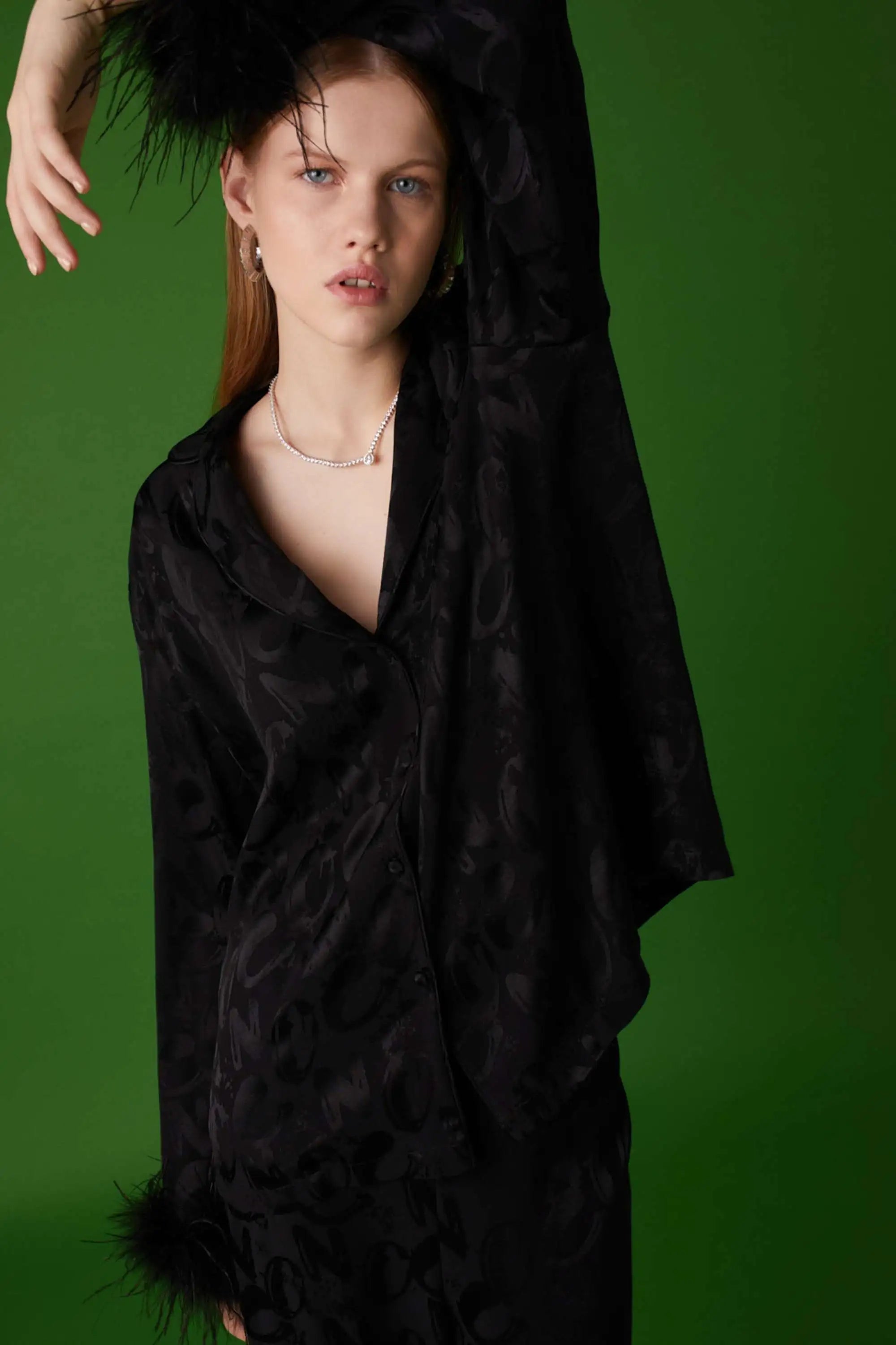 Elevate your wardrobe with this Feathered Shirt, featuring delicate feather accents at the cuffs that add a refined, textural elegance to the design. The flowy silhouette drapes gracefully, offering both comfort and sophistication for any occasion. Crafted for effortless style, the shirt includes a classic button closure that complements its sleek lines. Perfect for layering or making a statement on its own, this piece brings a subtle yet distinctive charm to your collection.