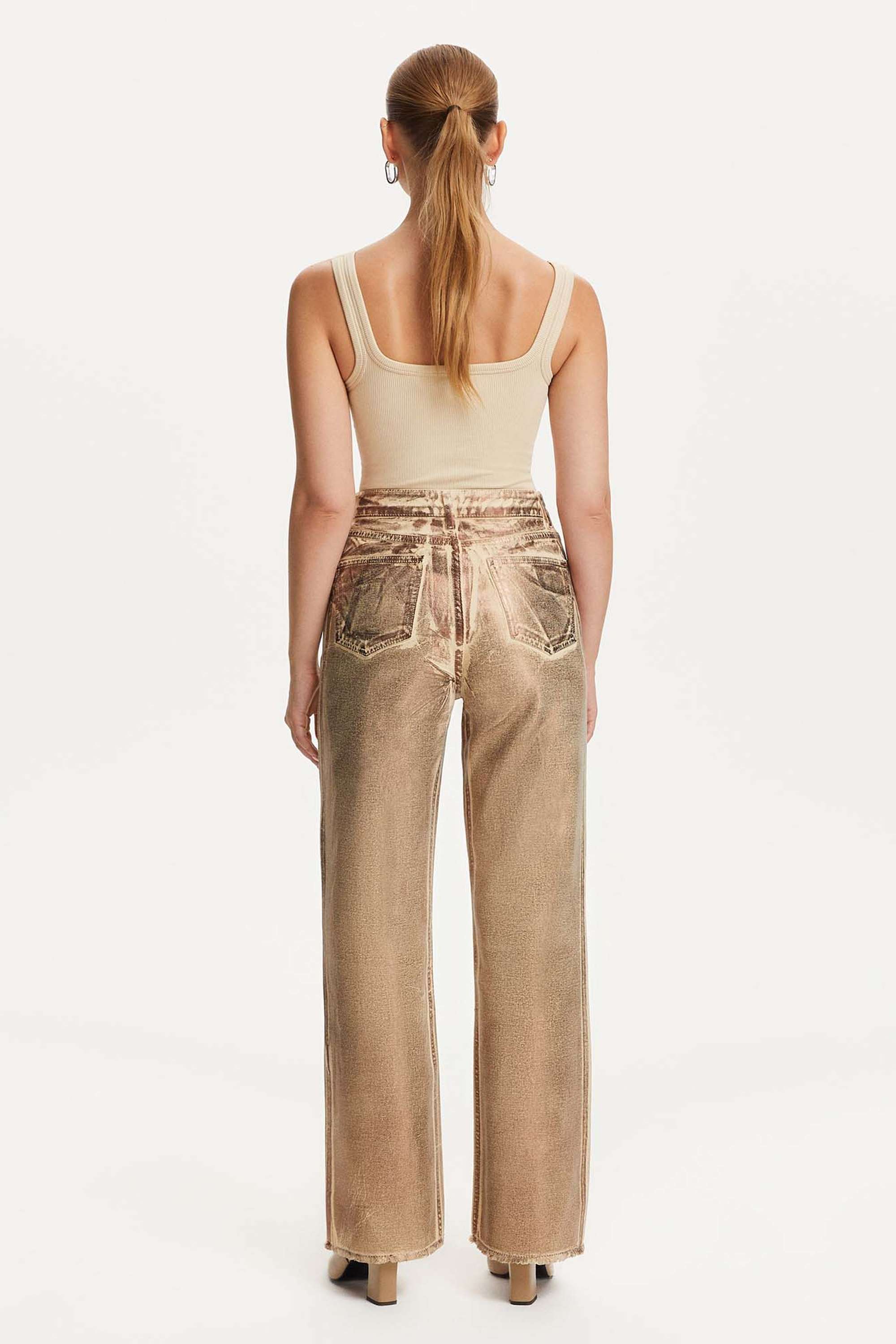 Metallic Straight Leg Jeans can be perfectly paired with a variety of fashionable tops, jackets, and shoes to wear your own style.