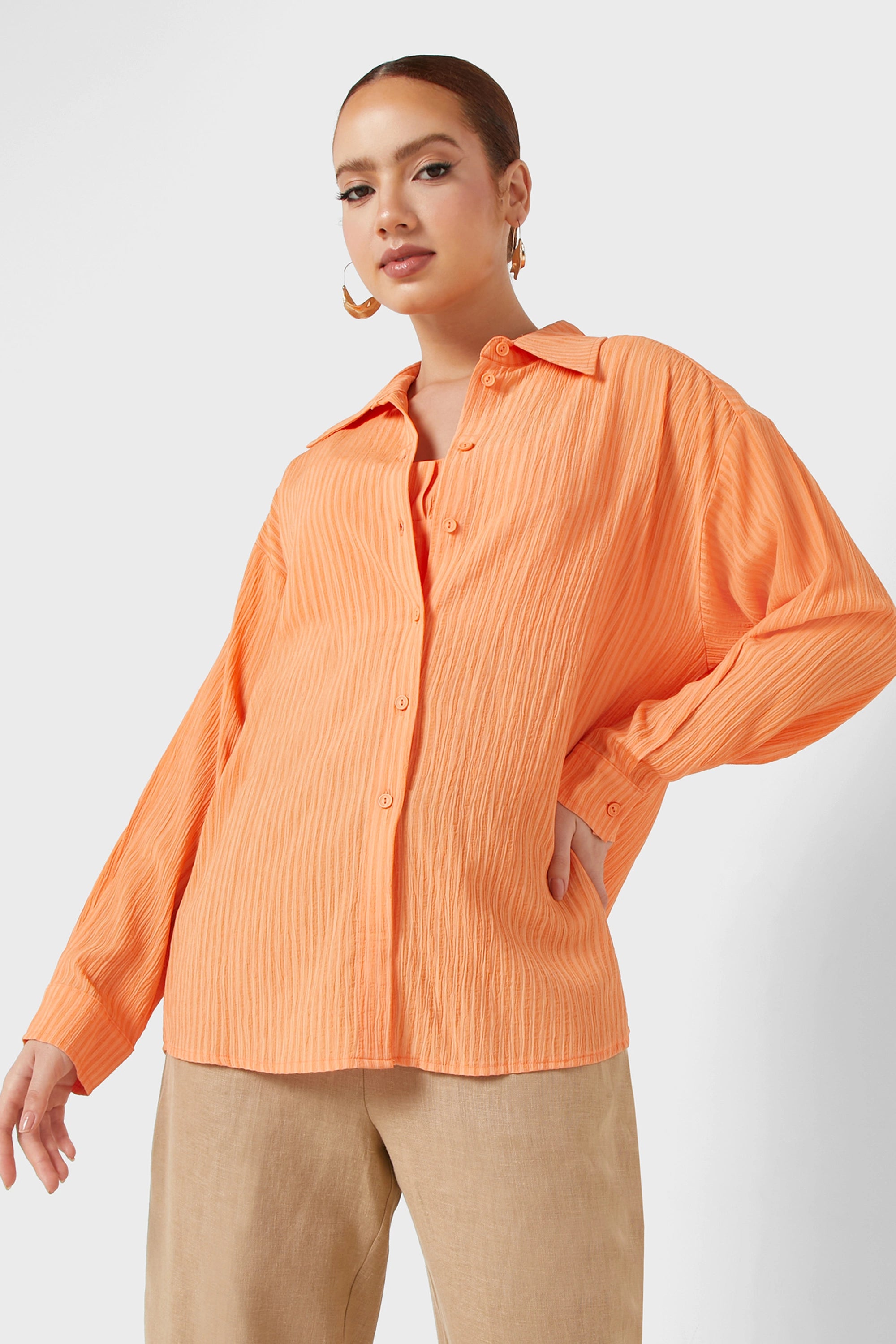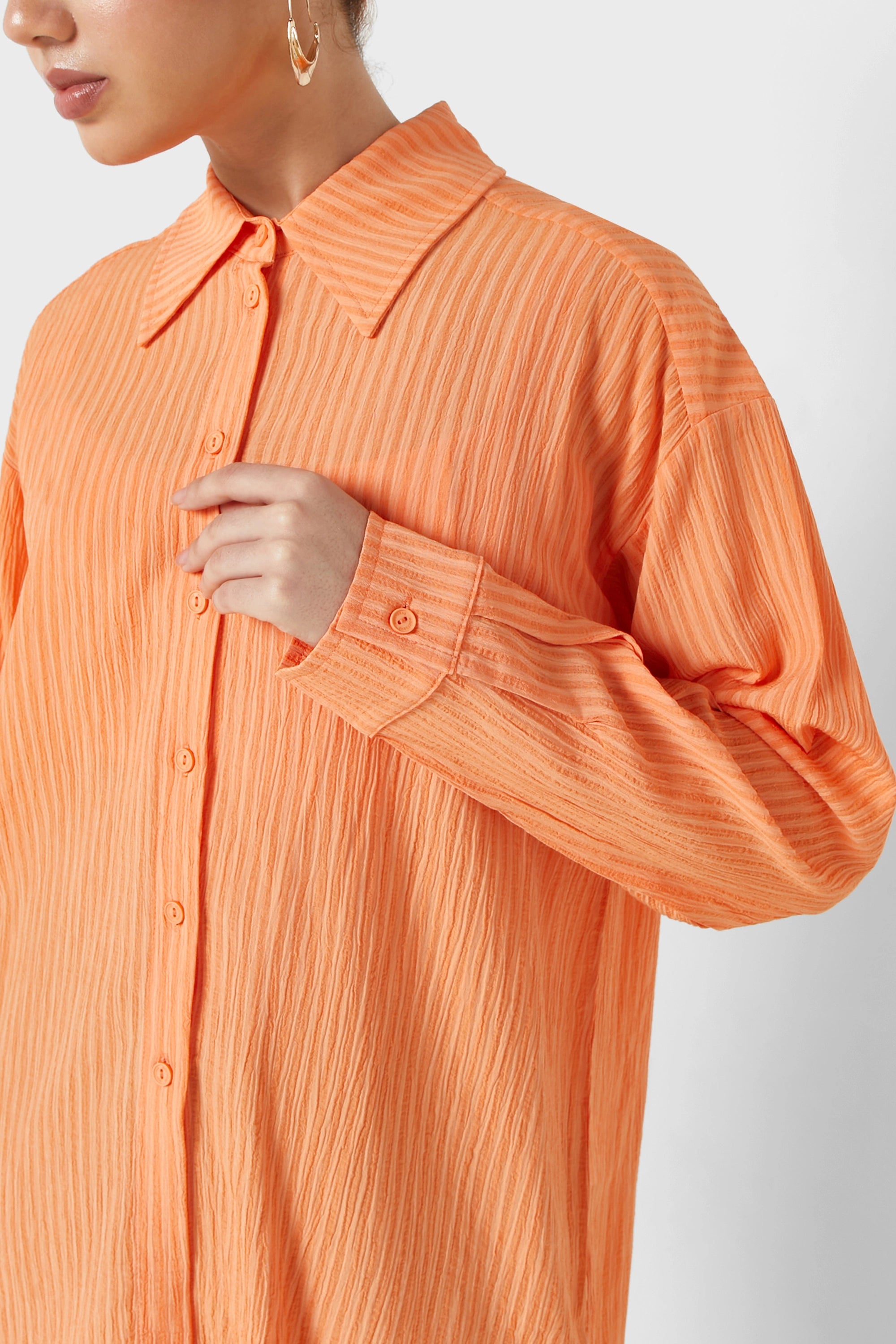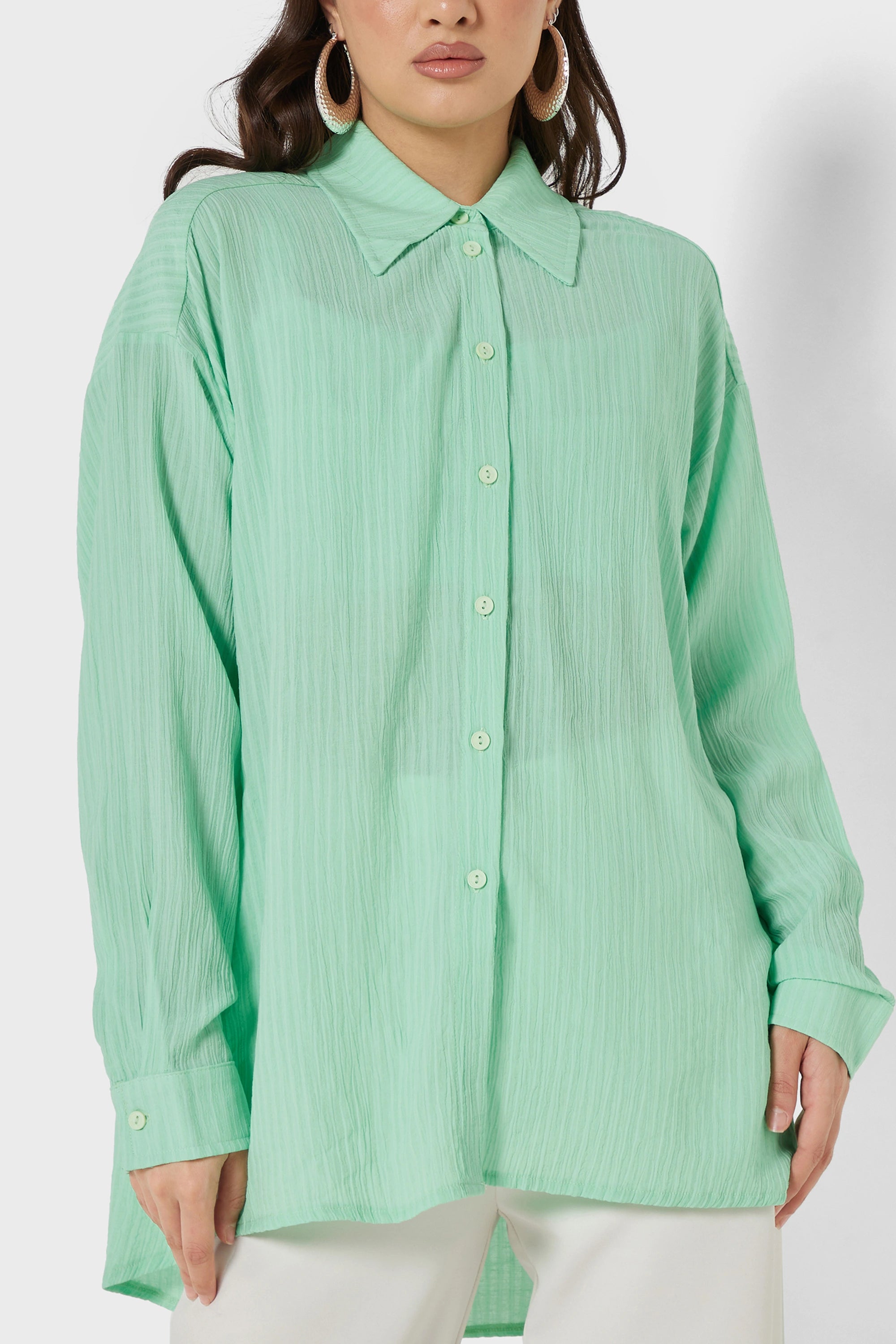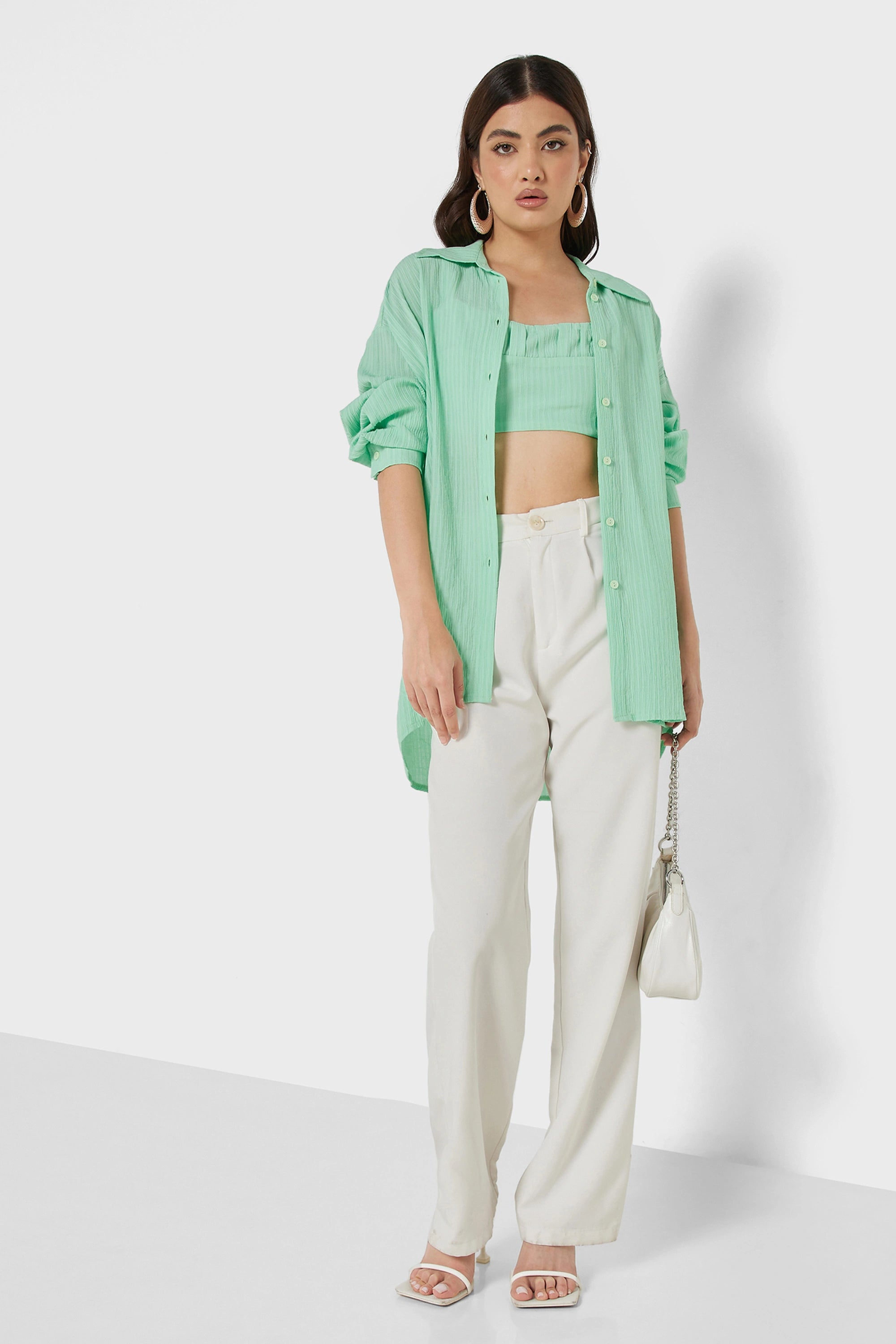 Twinset is made up of a front buttoned oversized shirt and elastic crop top.