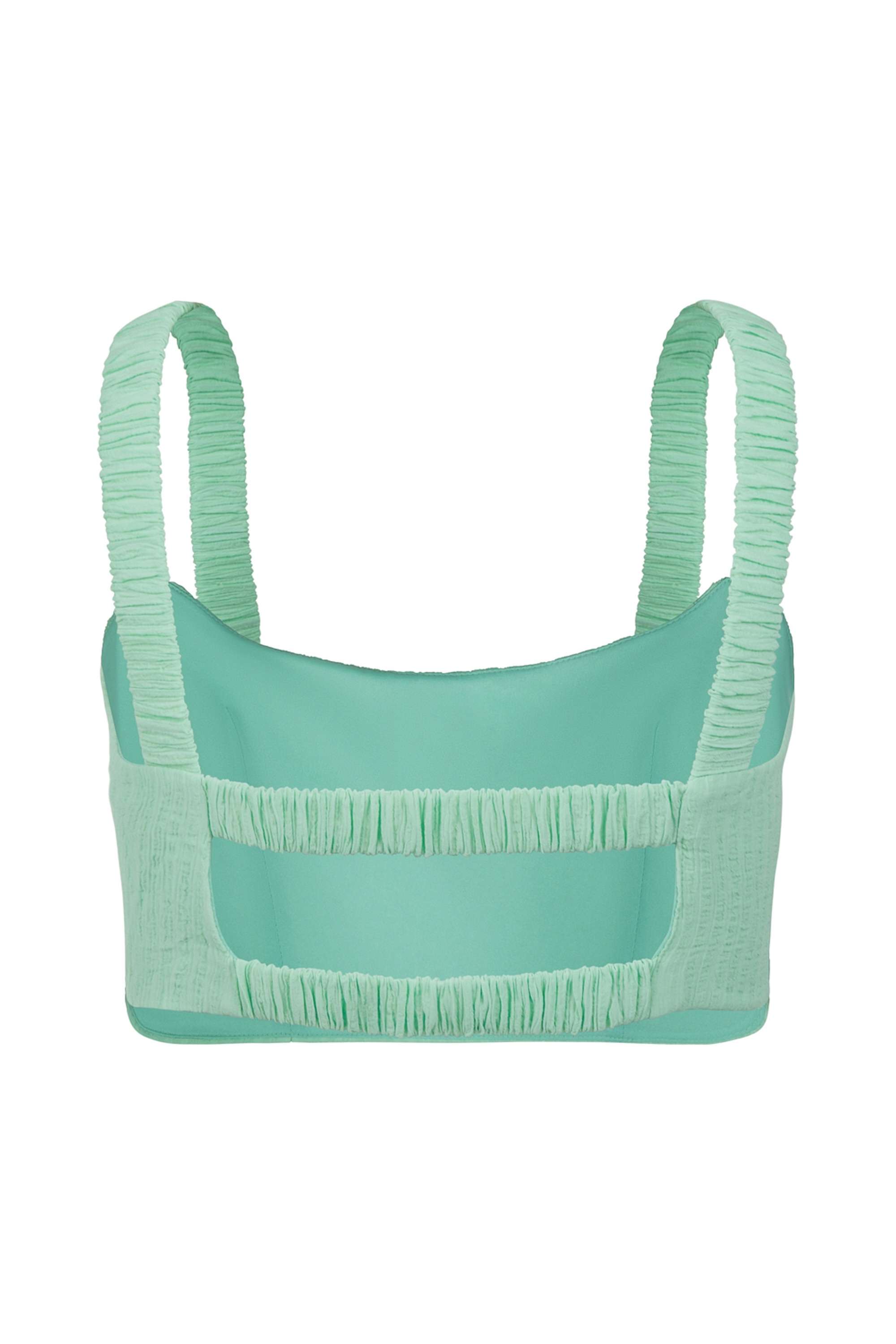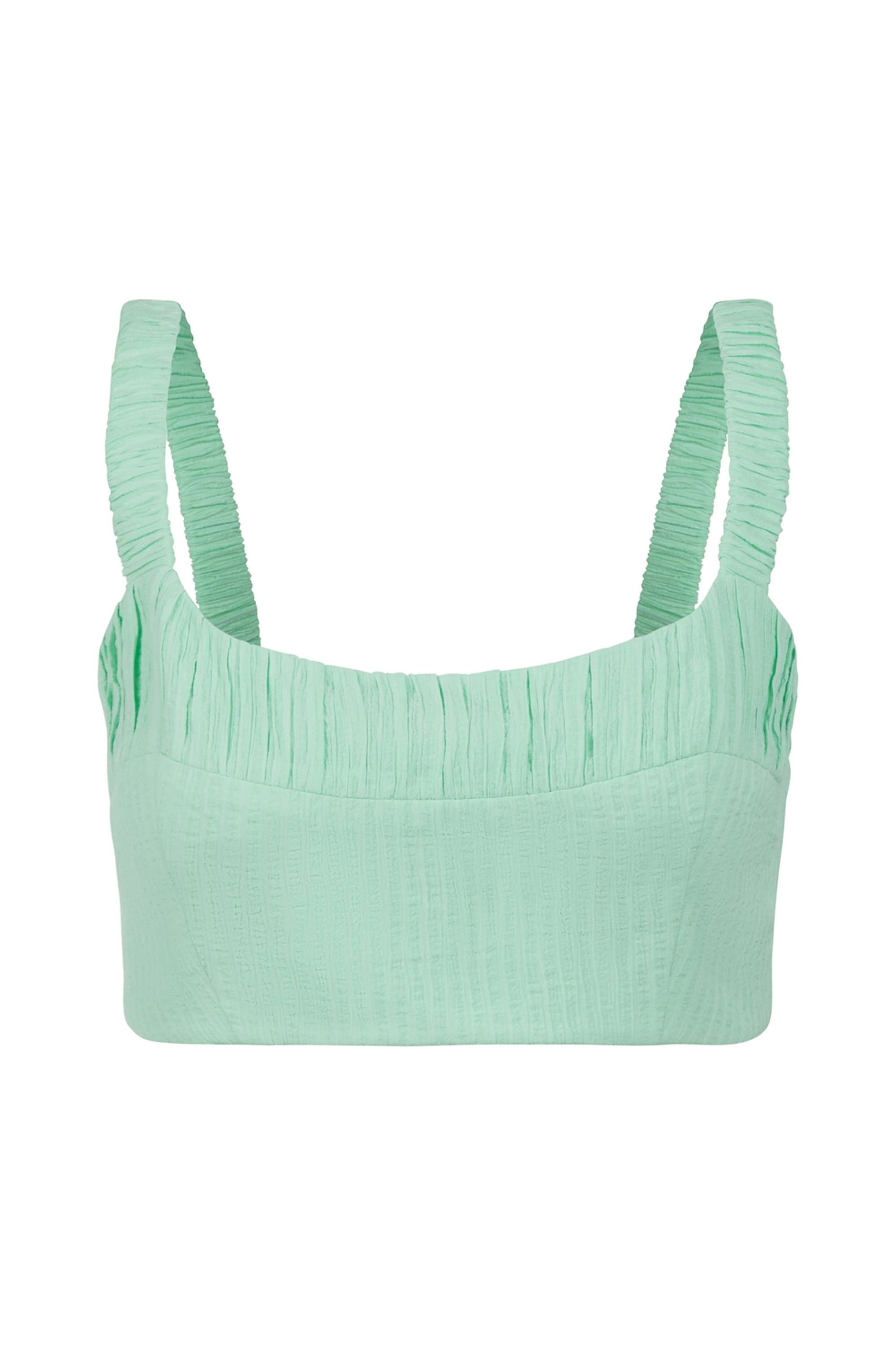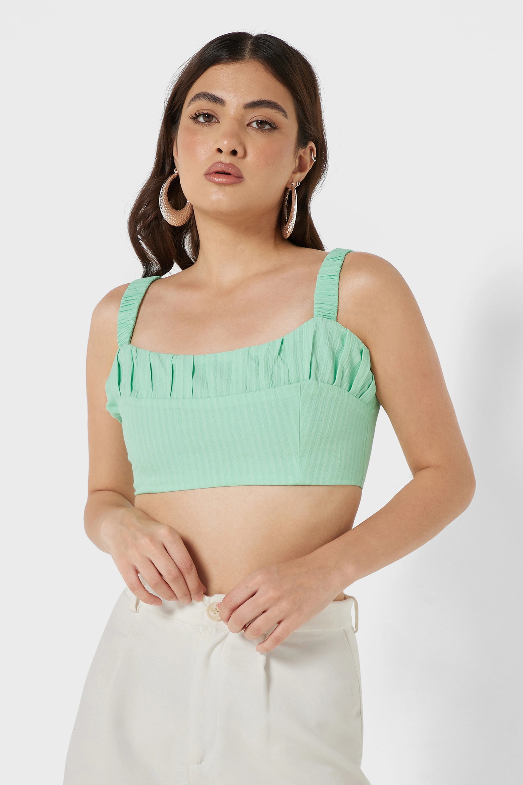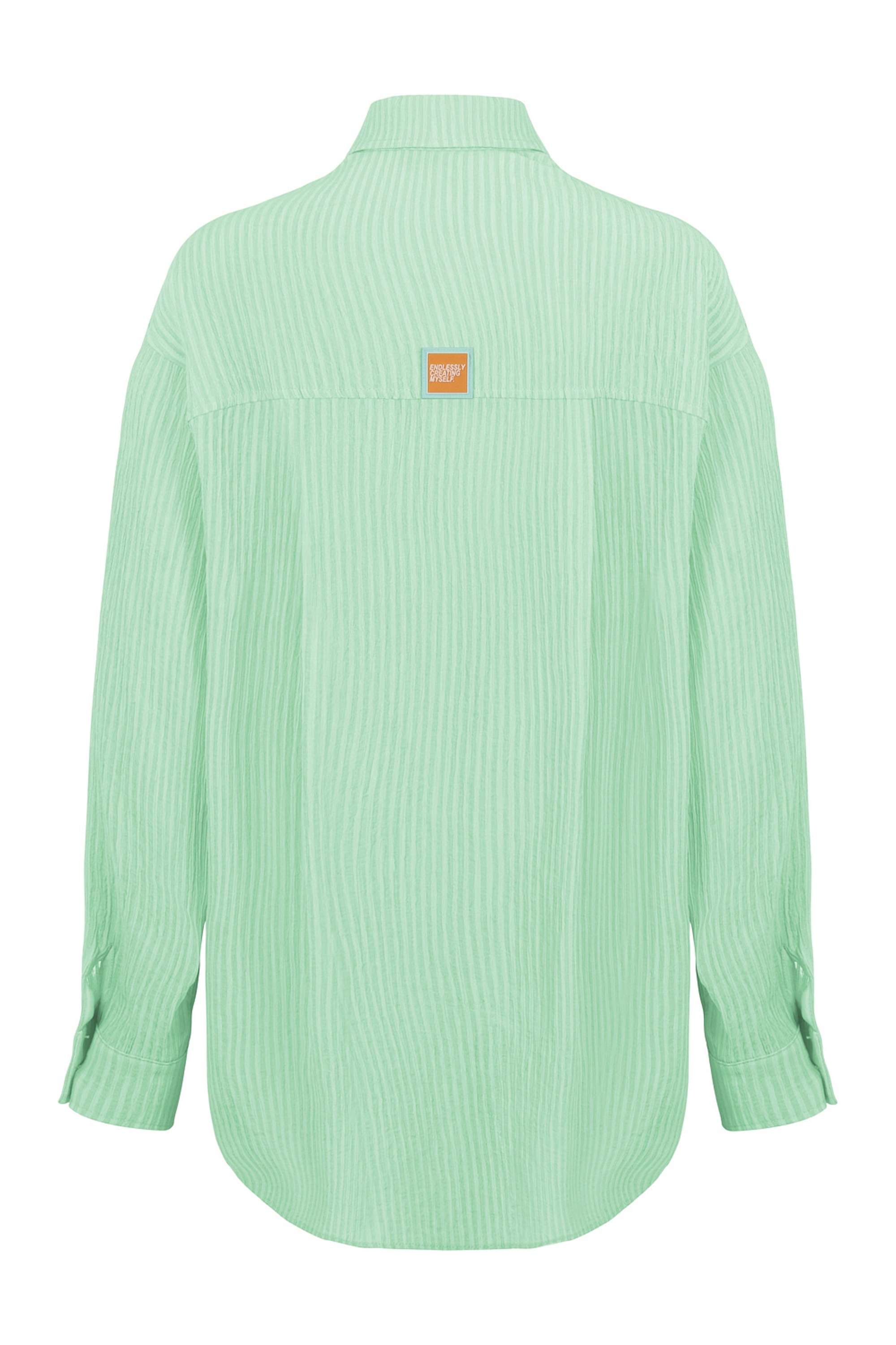 Twinset is made up of a front buttoned oversized shirt and elastic crop top.