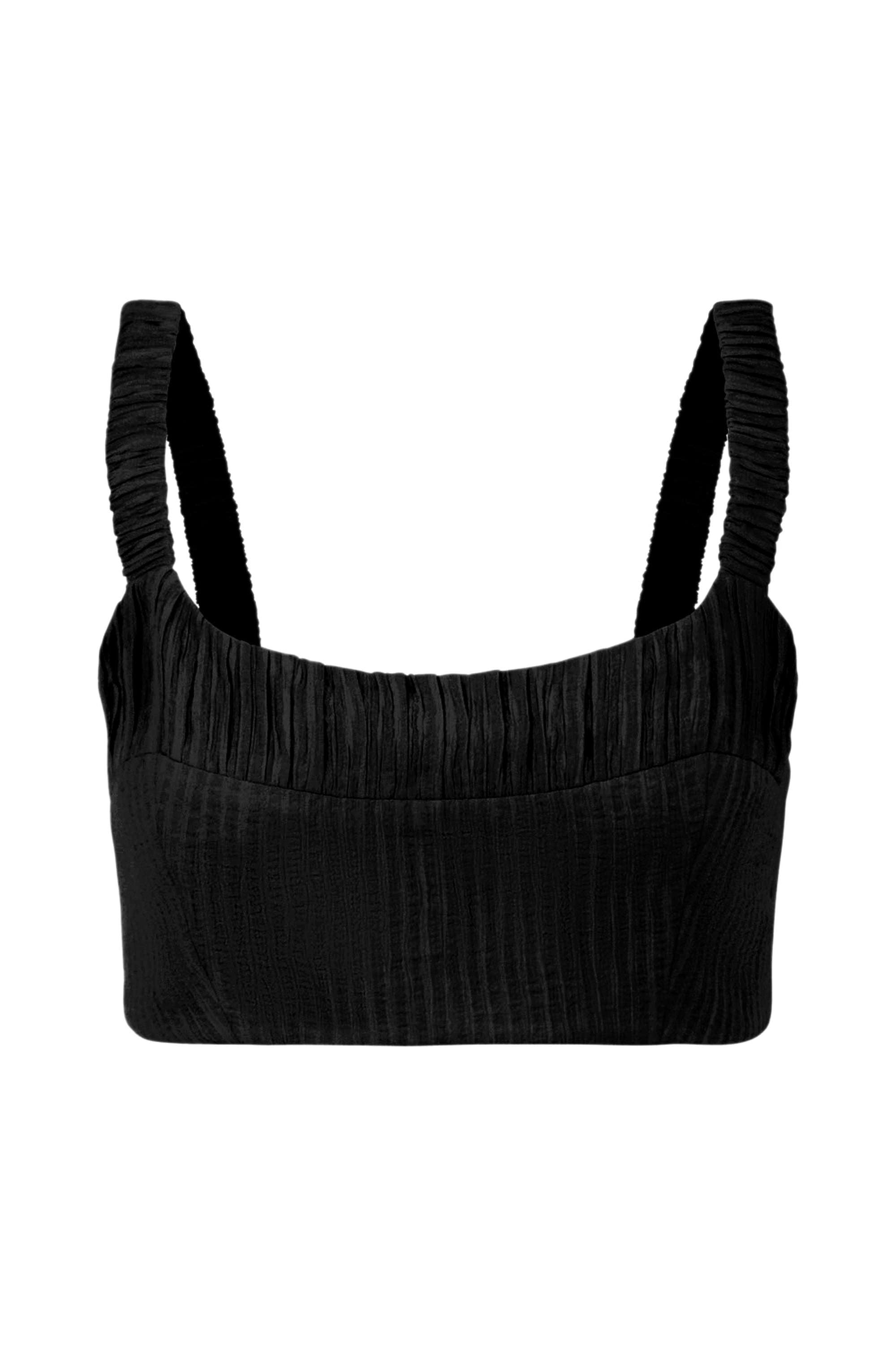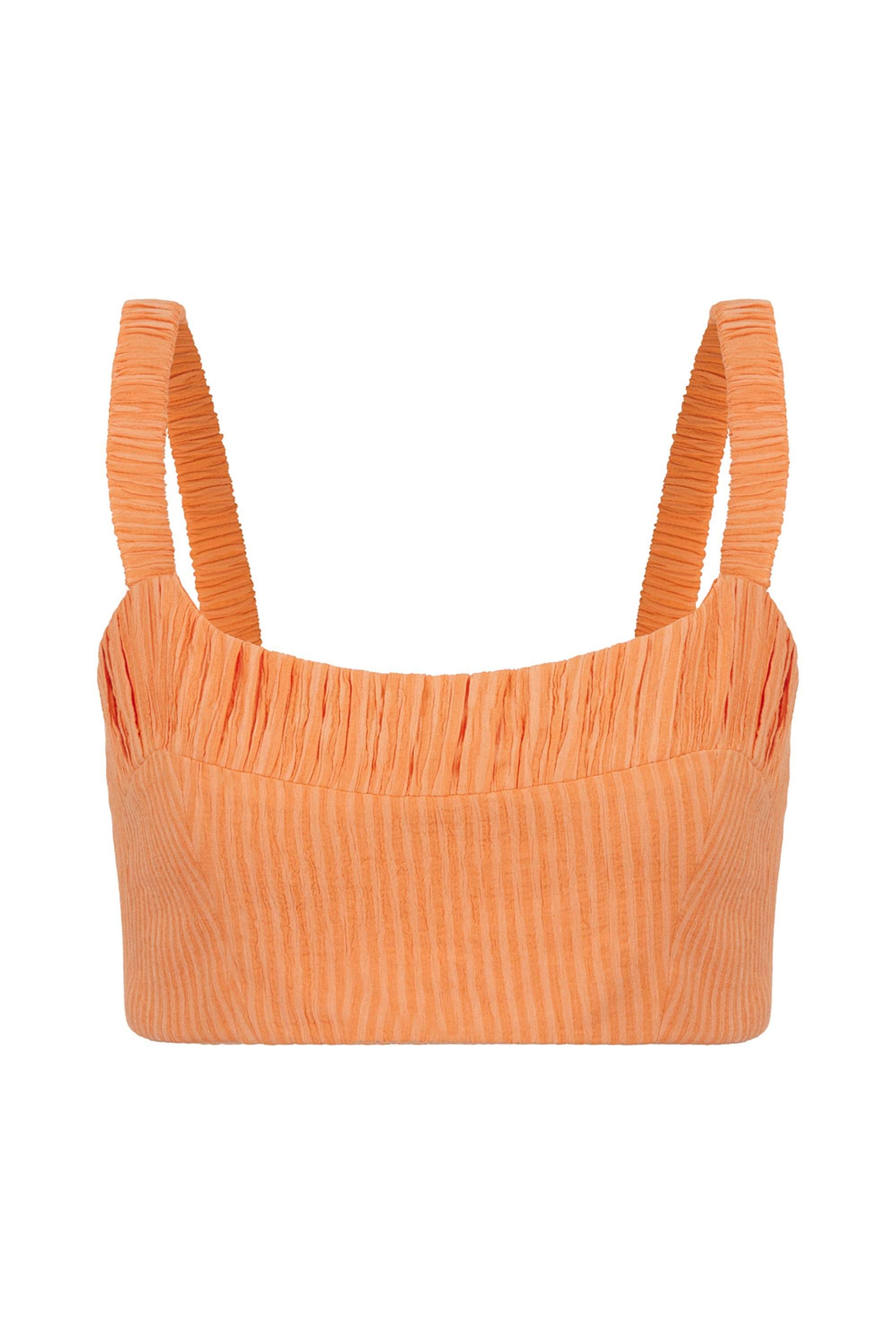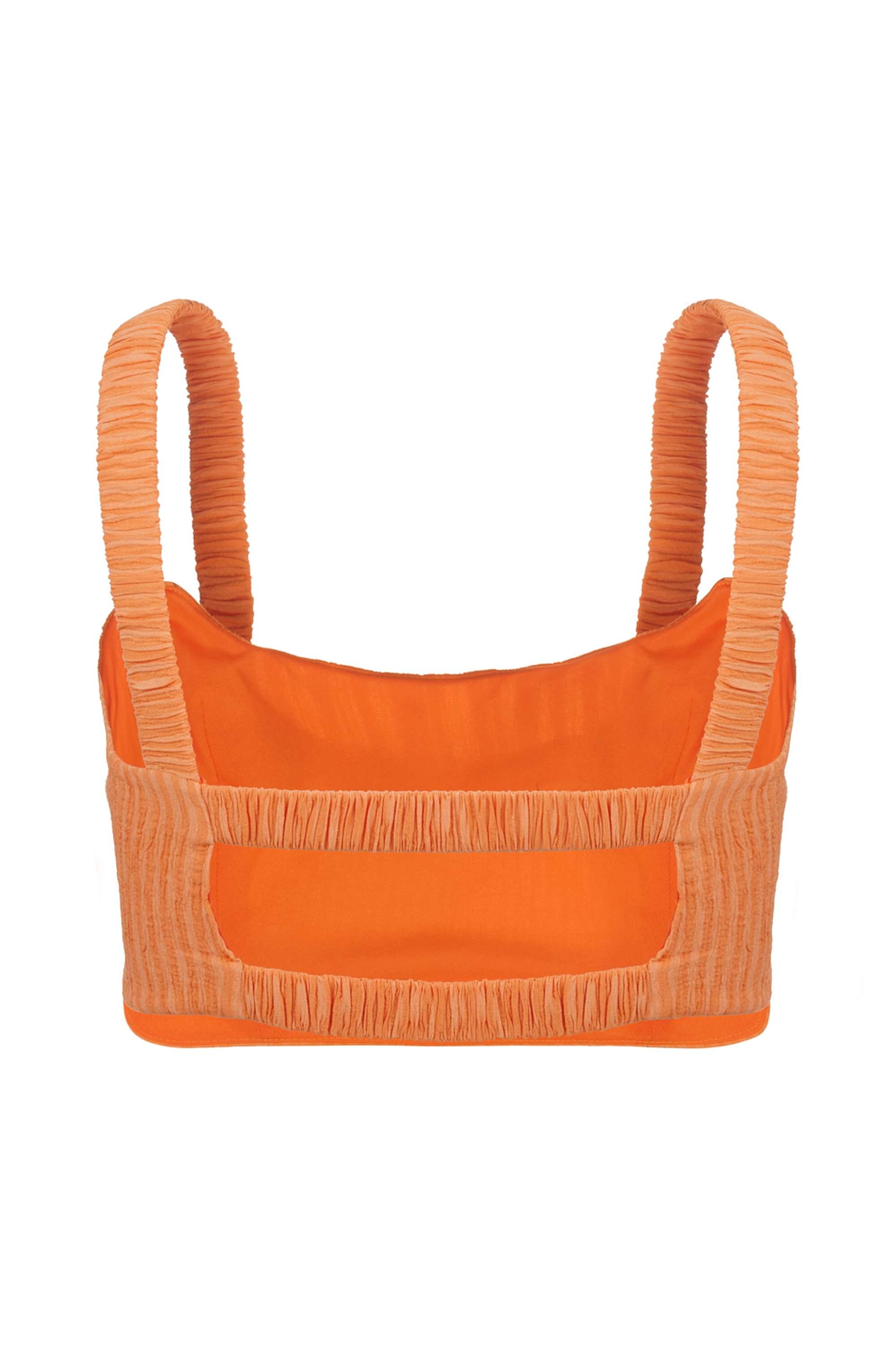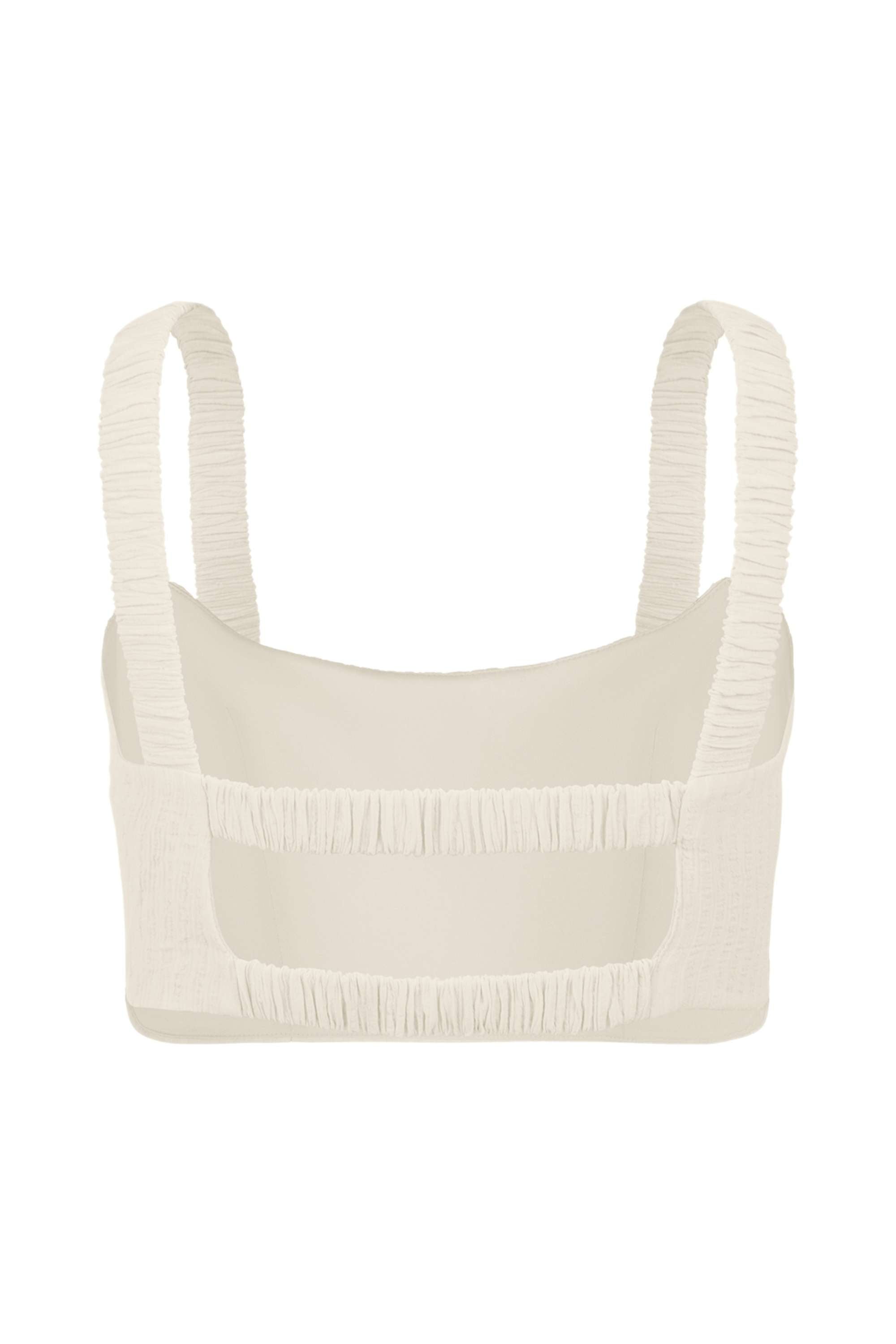 Twinset is made up of a front buttoned oversized shirt and elastic crop top.
