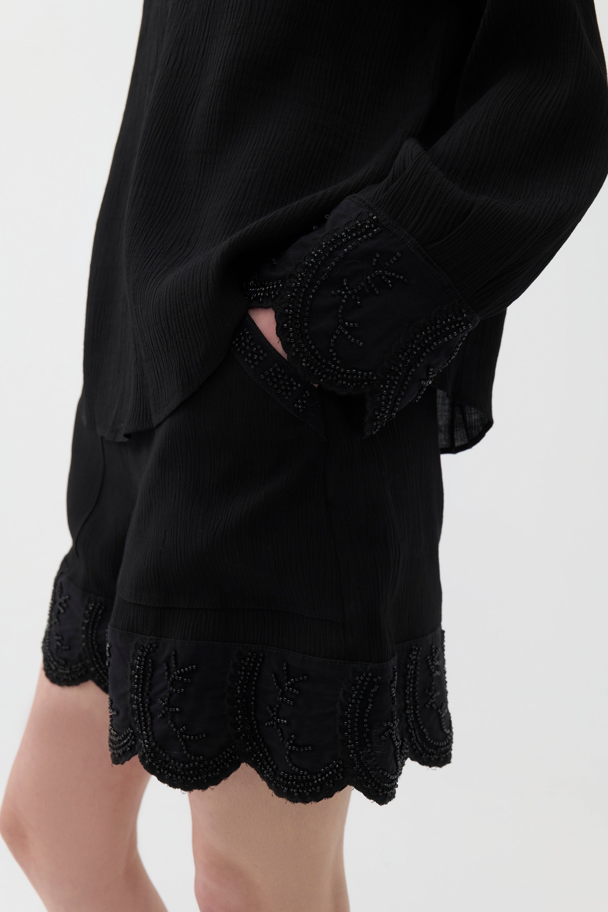 Casual cute style, this Stone Detailed Shorts is easy to match with blouse, tee, T-shirt, top, crop top, cami, tank, vest, etc to have a fashion casual look.
